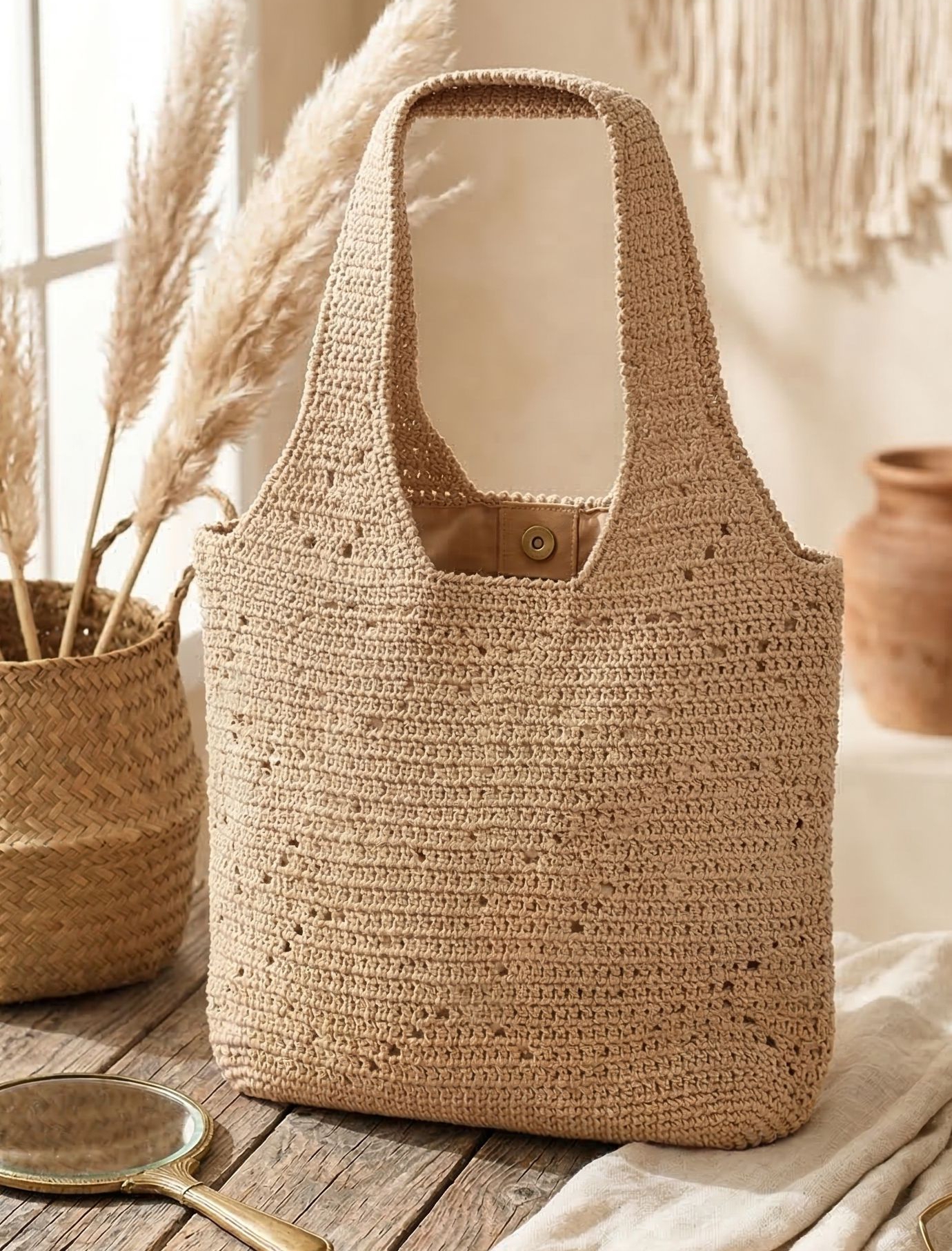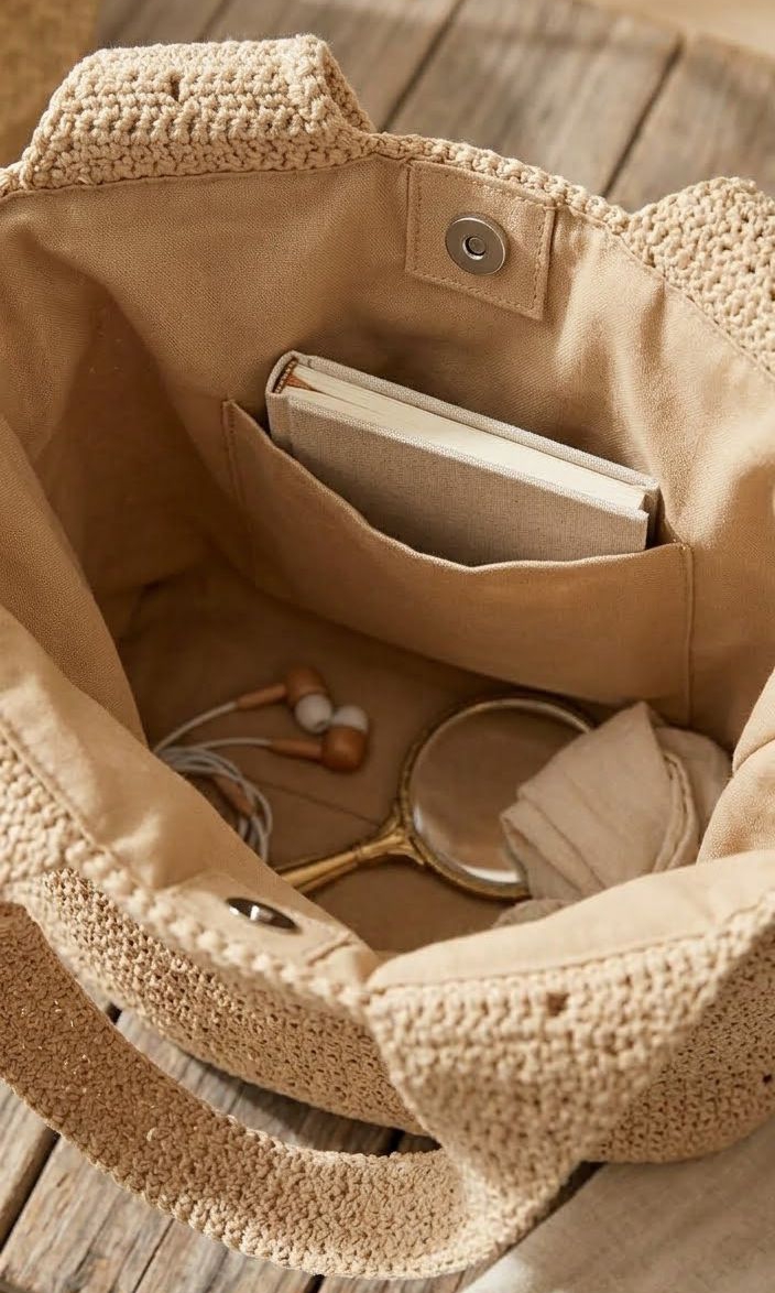 Tkana z szacunku dla natury, nosi bawełniane serce z kieszonką na te drobne rzeczy, które wypełniają dni. Guzik zamyka prosto i szczerze. Dwie rączki, każda po 52 centymetry, pozwalają nieść ją w dłoni lub na przedramieniu – jak kiedyś, jak zawsze, jak powinno być.